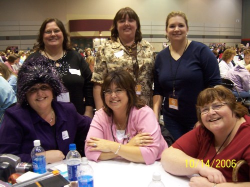 Linda Hansen came over to our table soon after we got there and was so sweet as usual ( Love her) . I told her we were going to have a fabulous day because 2 of my girls were 1st timers to regionals then she asked if they were Shy wellll…. then she proceeded to ask me if we wanted to play family fued in the afternoon But that I needed to pick 3 other players ..YAHOO Kelly decided to play Carol and Diane didnt want to .. I asked my upline Lisa then Tyann they both said ok .. Long story short .. We lost the game BUT we still got a stamp set YAHOO!!! Boy this is Great fun!! We all were sooo nervous